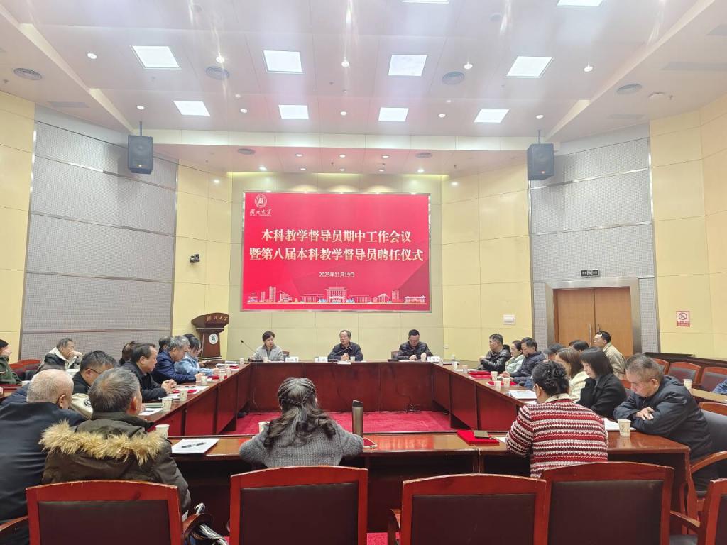 11月19日上午,学校在会议中心思诚厅召开本科教学督导员期中工作会议暨第八届本科教学督导员聘任仪式。党委常委、副校长李振出席会议,本科生院负责人、湖北大学第八届本科教学督导员参会,本科生院院长王国成主持会议。